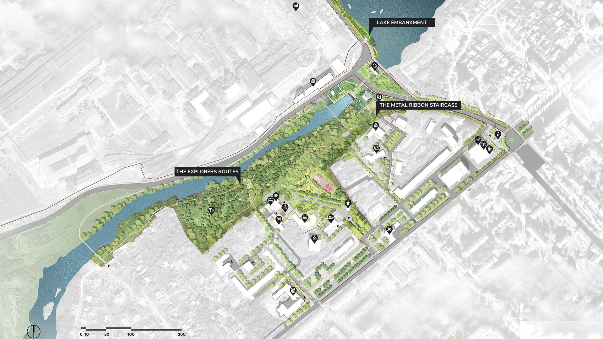 The sports objects help to develop agility and endurance, in link with natural features of the South Ural region. In addition, the path is equipped with a rope railing designed for visually impaired people, a strong local community. Those public spaces have become not only a platform for sport and promenade, but also a place of inspiration and ethical connection between people and nature.