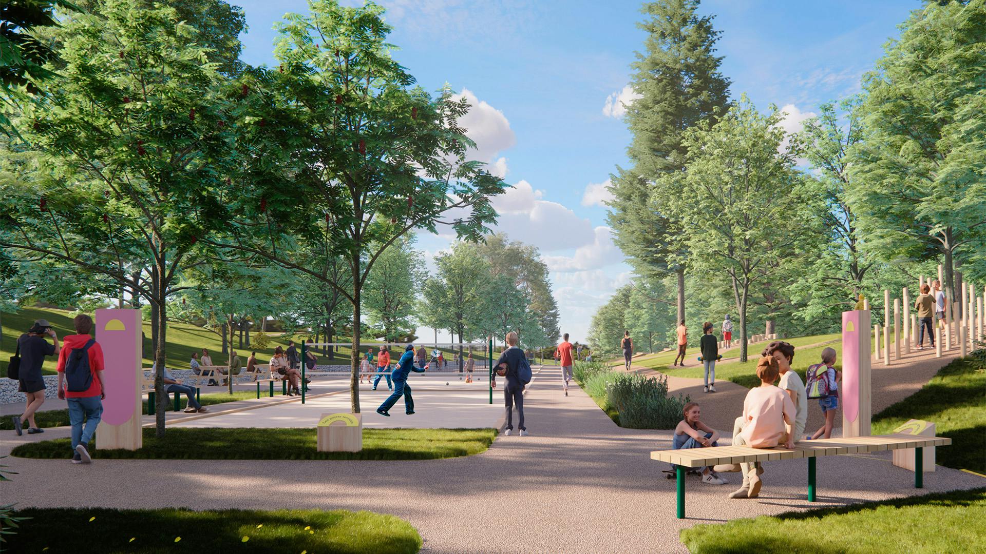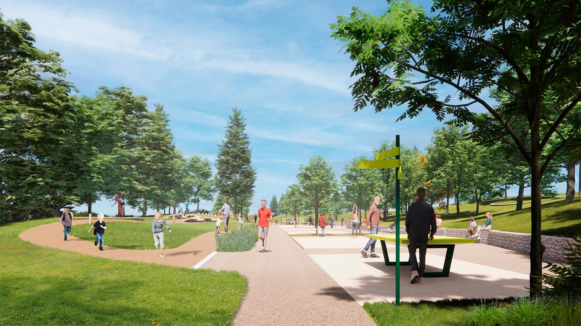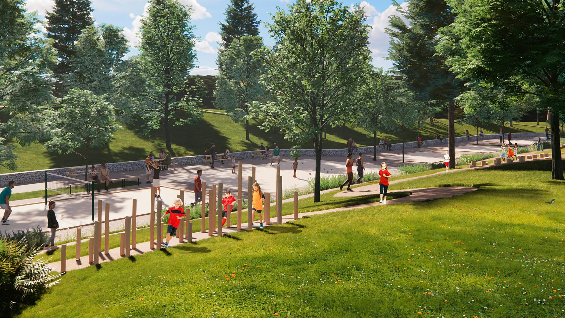 Make use of what's already there! Active design is at the heart of the project: all installations are freely accessible and encourage physical activity for everyone, centered around the theme of "playful challenge".