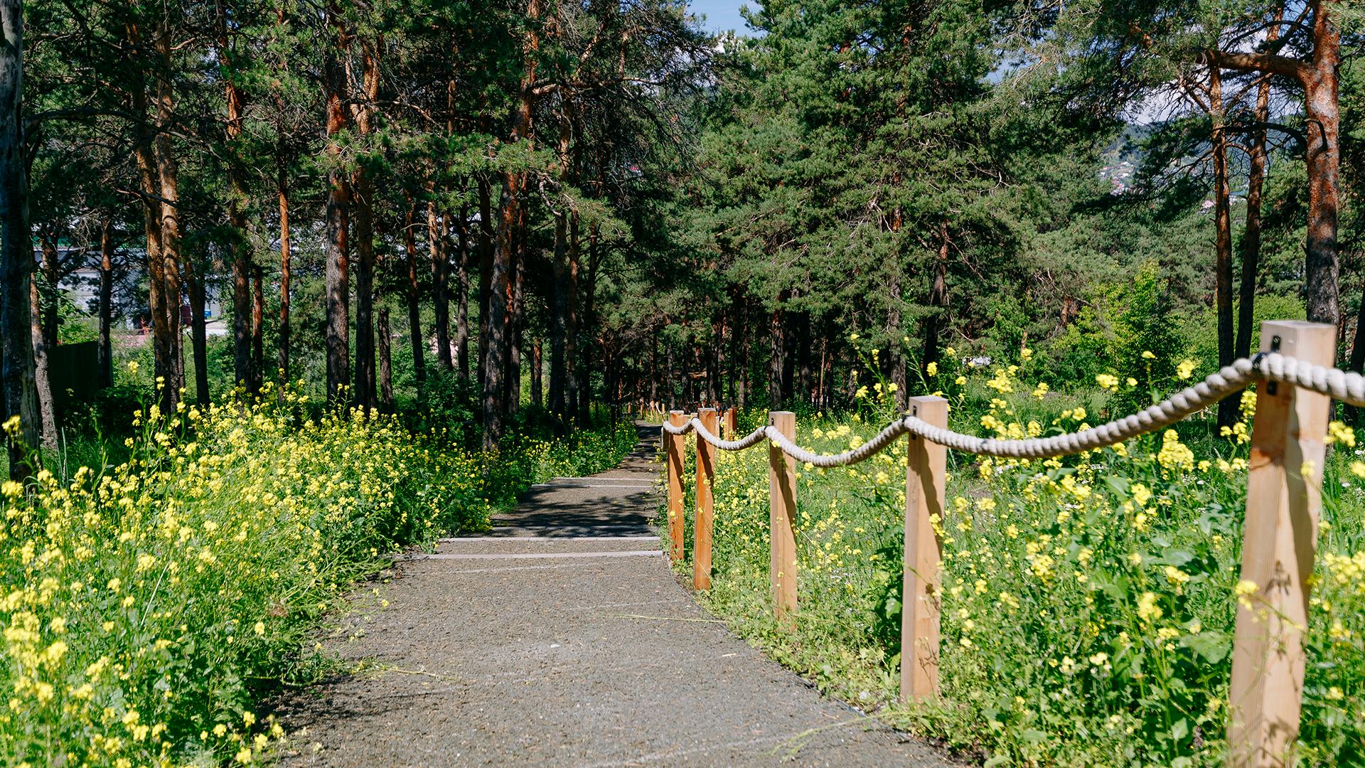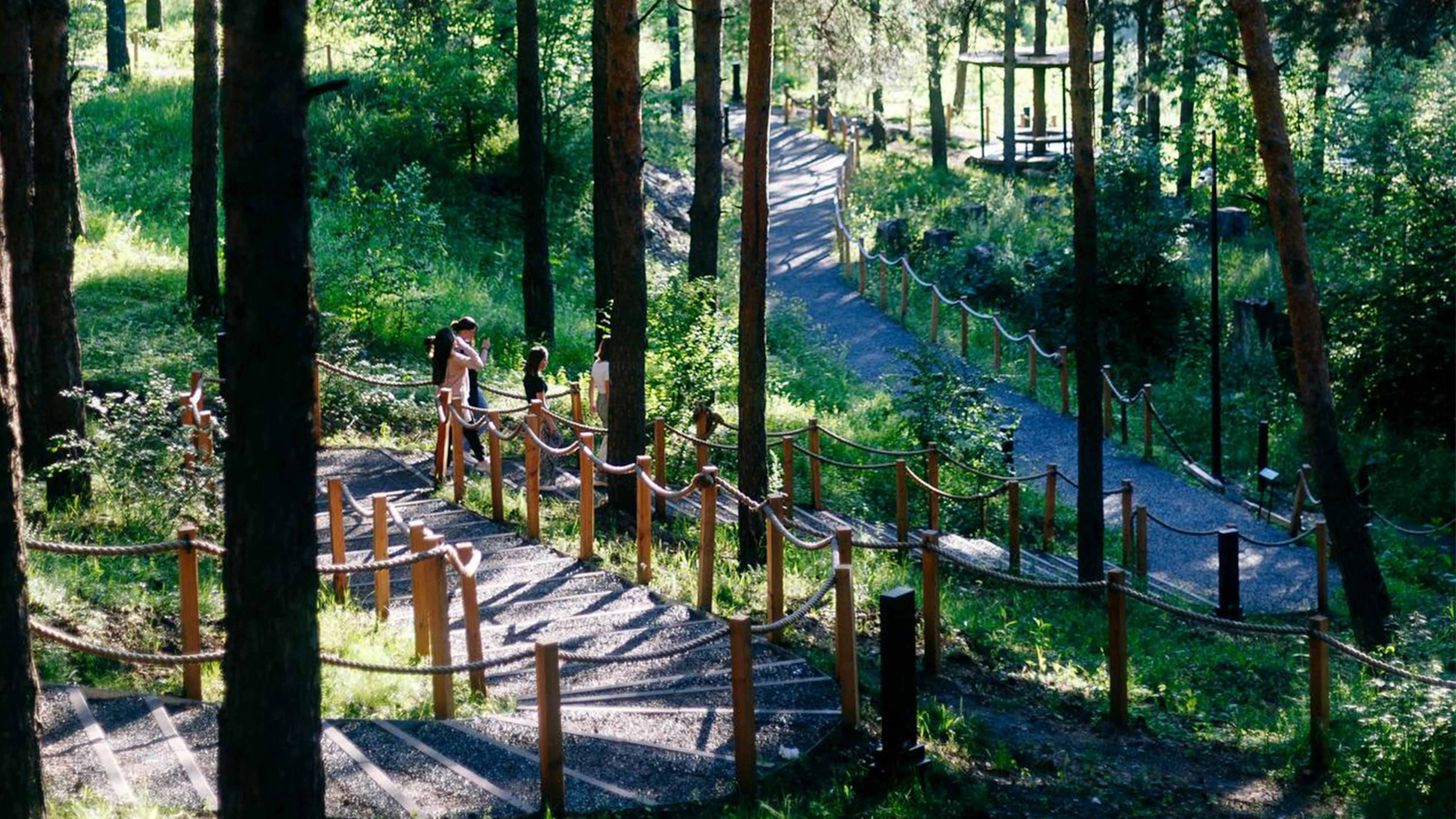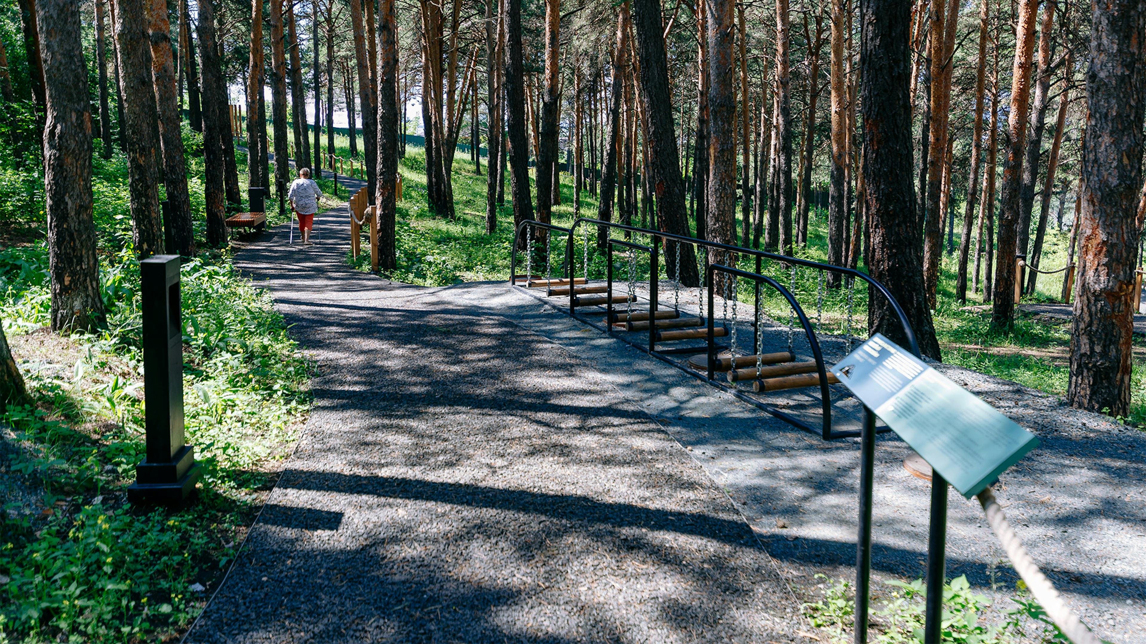 Общественное пространство стало не только площадкой для спортивных тренировок и прогулок, но и местом вдохновляющей и этичной связи между человеком и природой. В сосновом бору также есть тропа с ограждением для слабовидящих людей.