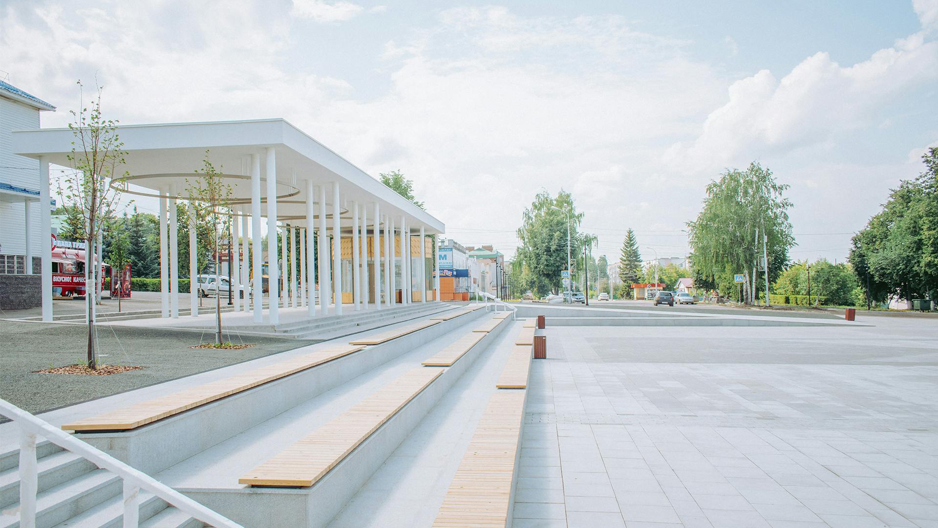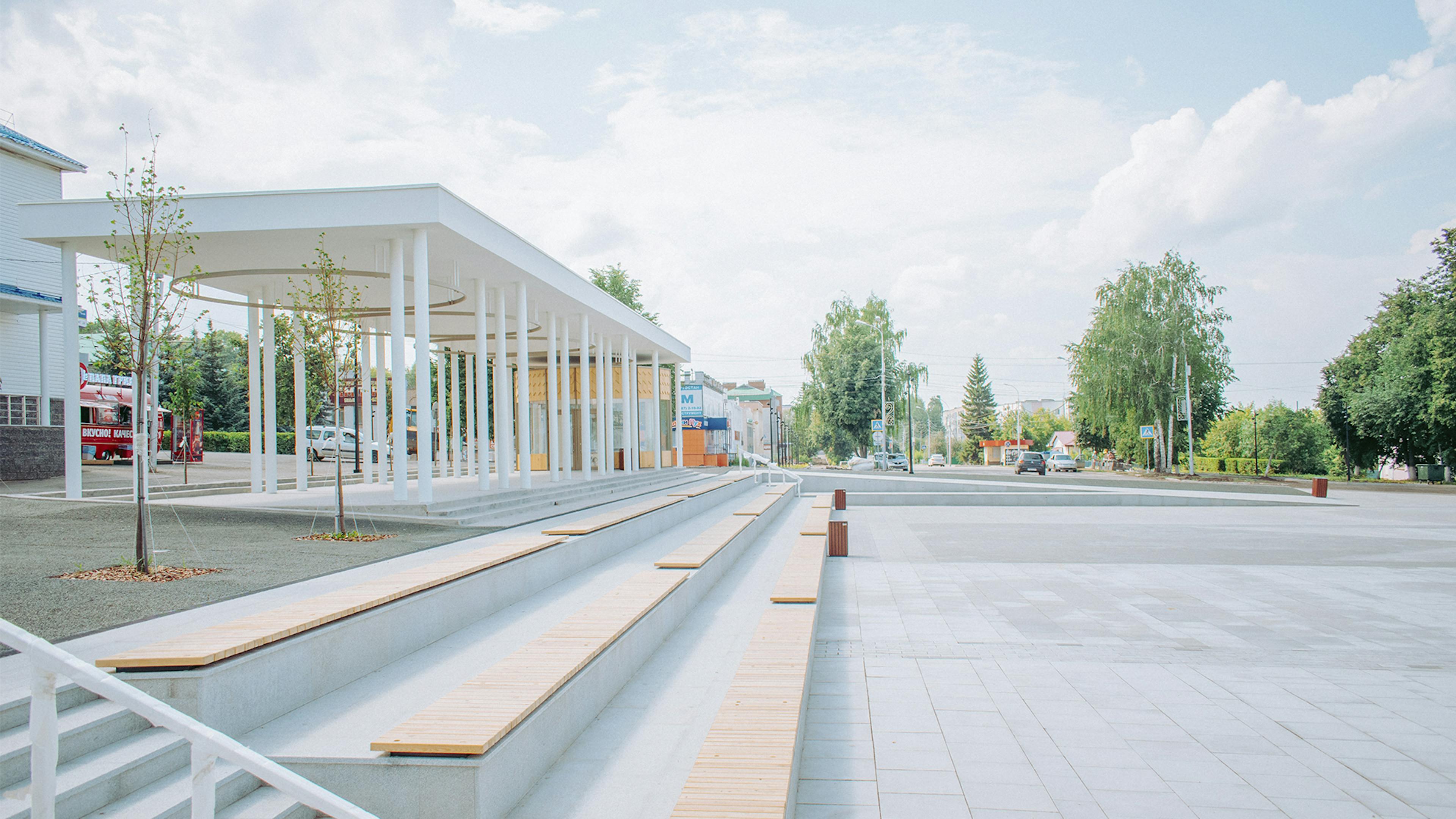 Центральная площадь Дюртюлей превратилась в полноценную городскую «агору». Мы сохранили исторический облик места и видовые перспективы, любимые горожанами, но сделали площадь более уютной и функционально насыщенной. На месте естественного перепада высот появился амфитеатр, а рядом расположился павильон «ОткрӨЙ» для открытого диалога администрации и горожан. Павильон объединен с навесом для небольших событий сообществ, общения и настольных игр.
