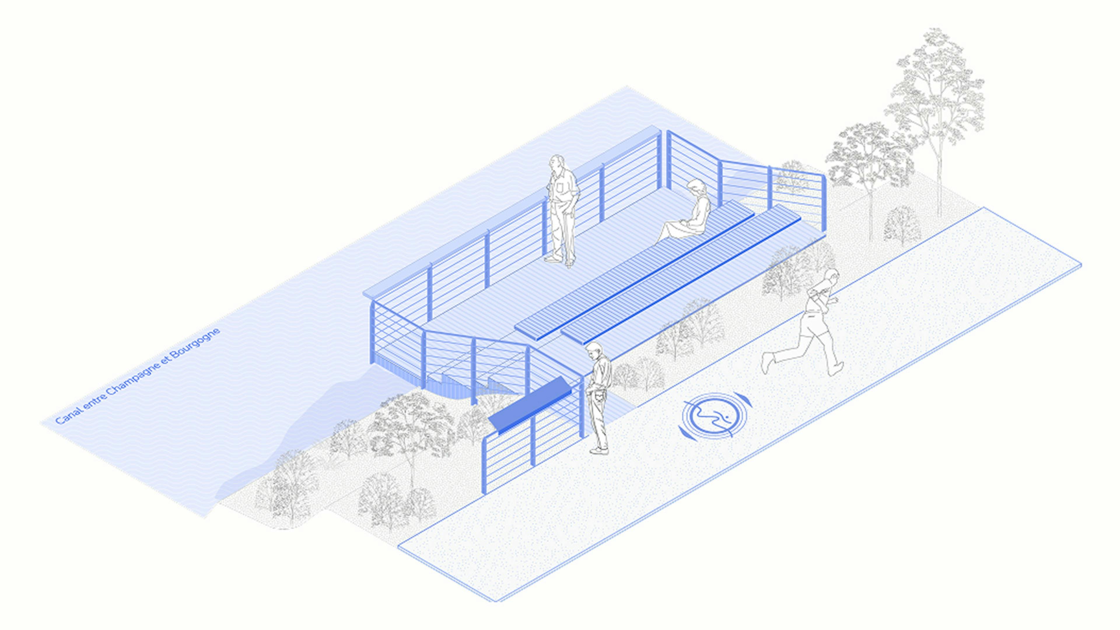 Двухуровневые амфитеатры позволят горожанам по-новому увидеть реку и больше узнать о ней. Здесь открываются живописные виды на воду и расположены информационные стенды с исторей этих мест и роли Марны в жизни города.
