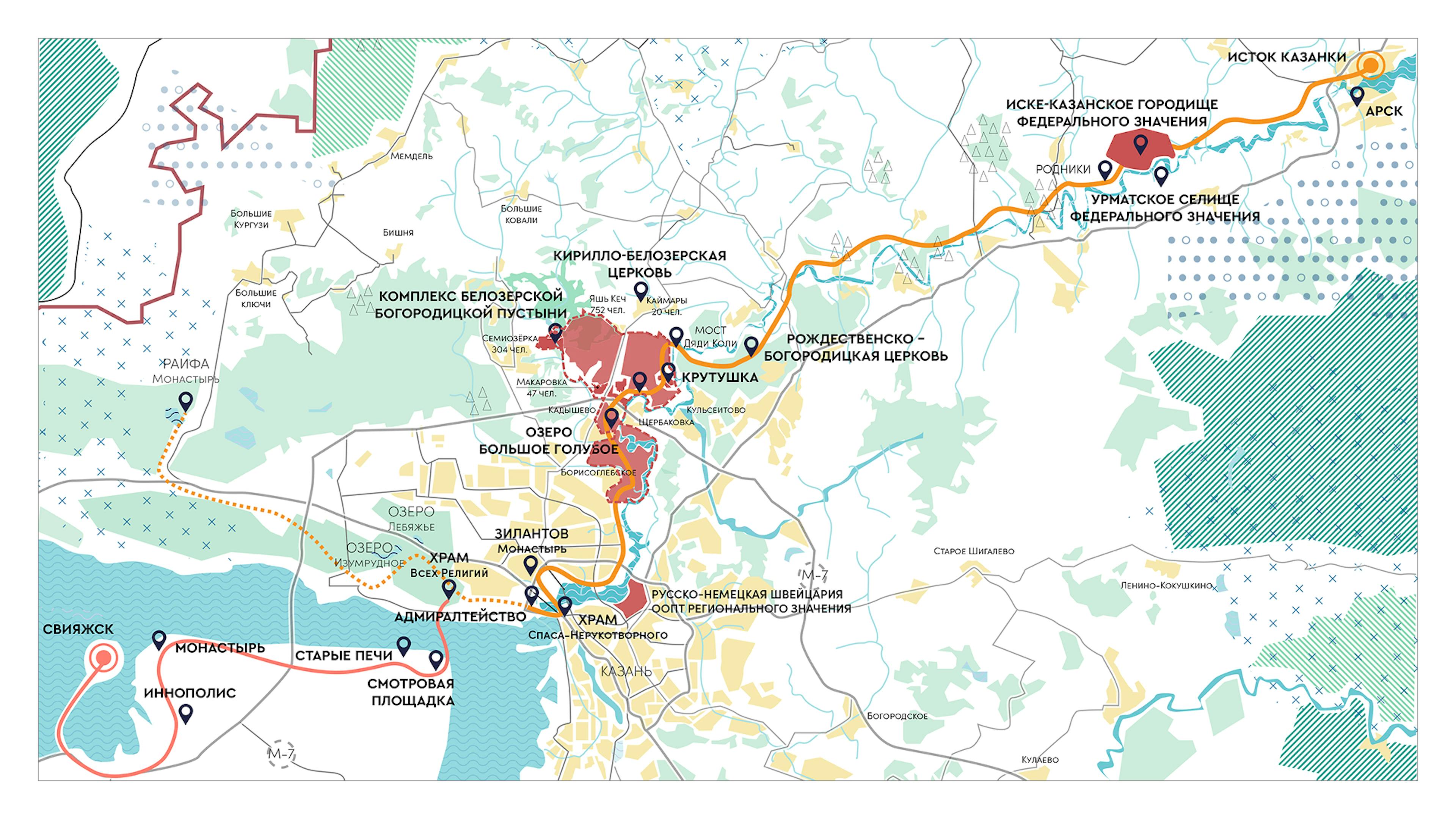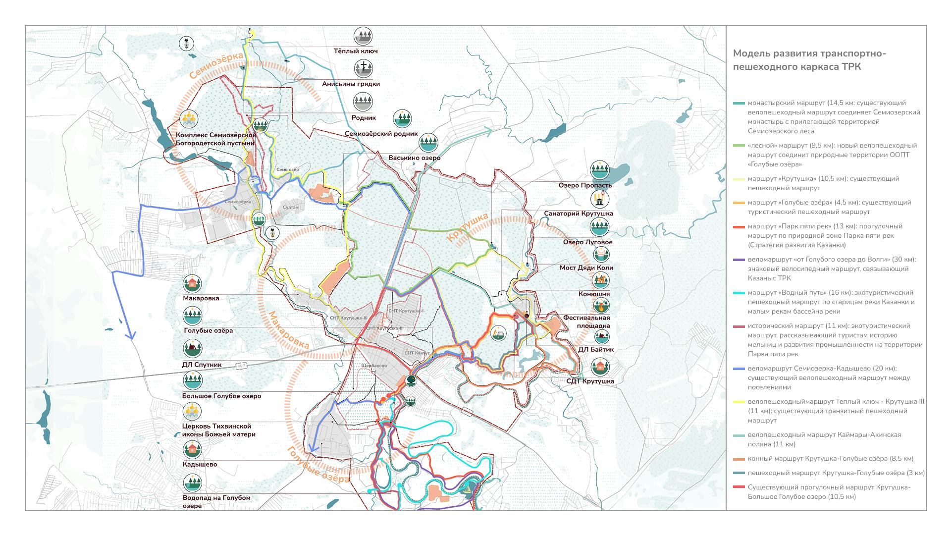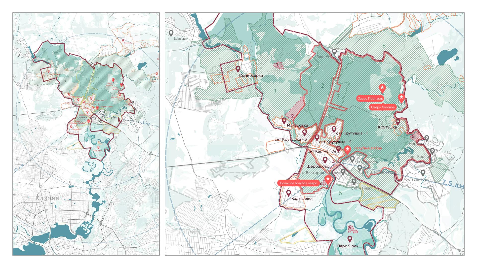 Голубые озера — главная точка притяжения кластера, которая сегодня страдает из-за повышенной антропогенной нагрузки. Проект поможет смягчить негативное влияние на ценную территории за счет более строгого режима охраны. Основным времяпрепровождением у озер станут прогулки и созерцание, а все активные функции будут перенесены на реку Казанку.