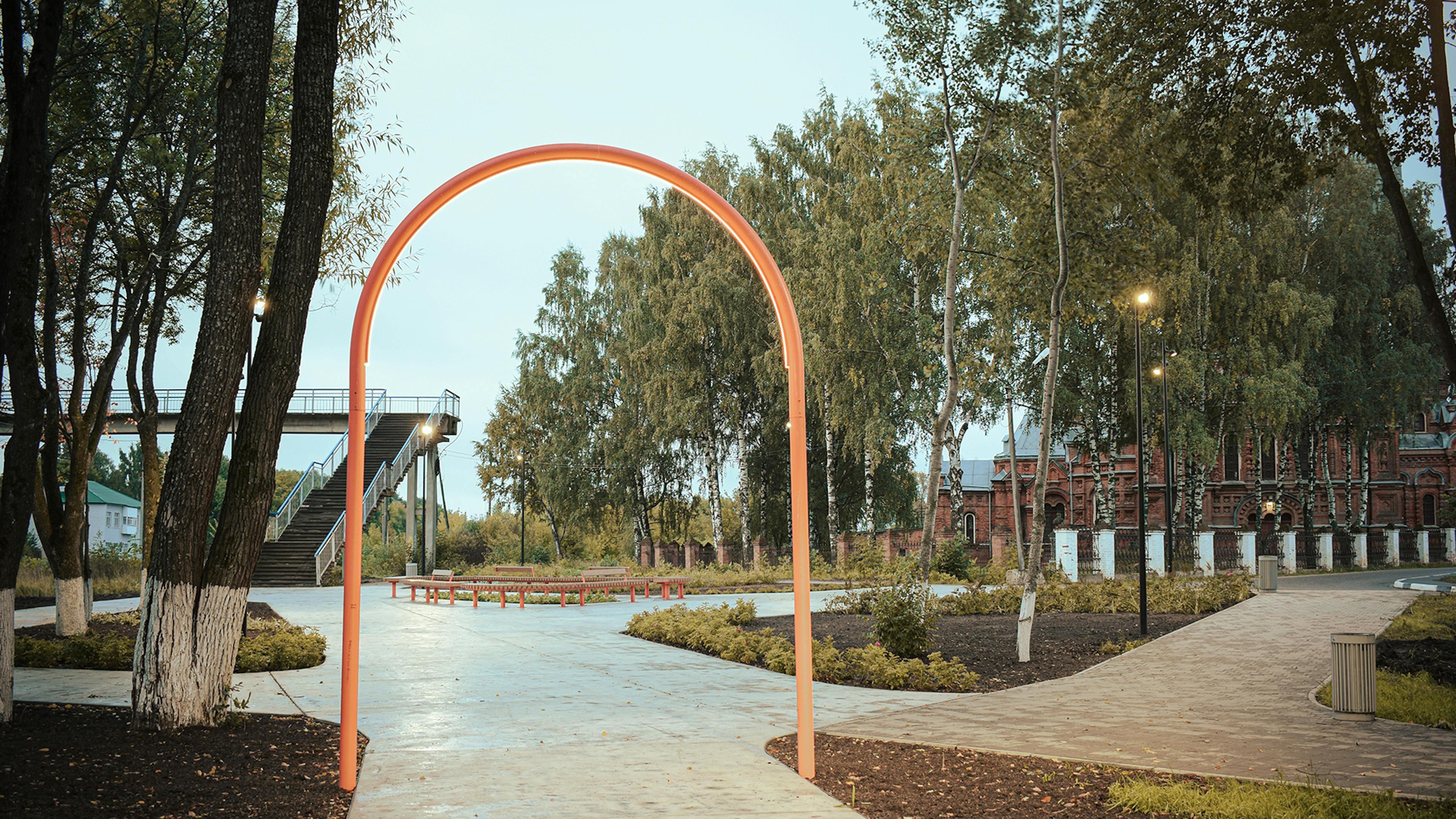 В вокзала появился уютный парк для местных жителей, который также служит зоной гостеприимства для туристов. В парке установлены скамьи для тихого отдыха, информационный стенд для знакомства с городом и арка, символизирующая ворота в город. Благодаря работе с озеленением отсюда открывается великолепный вид на Скорбященский храм, главную городскую достопримечательность.