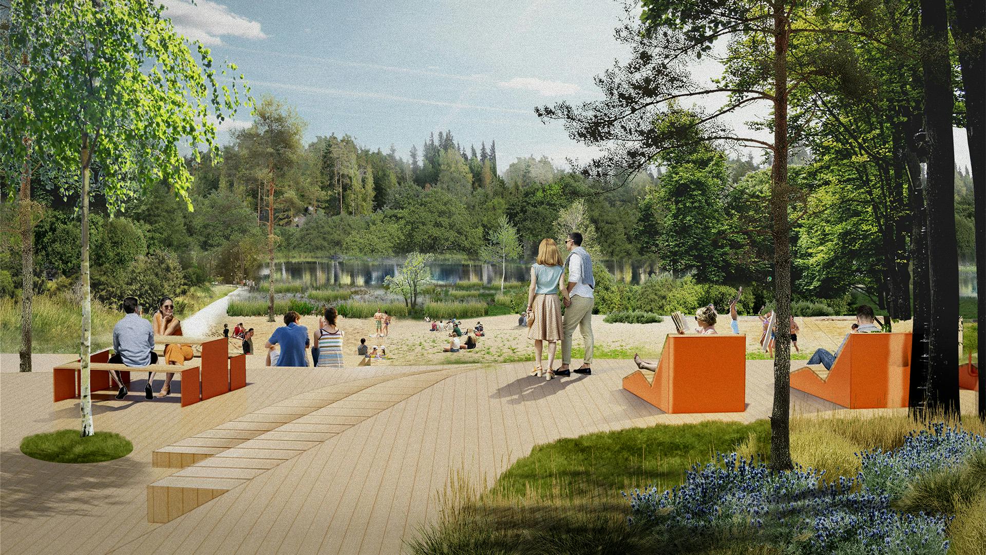 В рамках проекта благоустройства территории Пейзажного парка мы предлагаем решения, обеспечивающие баланс между поддержкой существующей природной экосистемы территории и созданием функциональных площадок с необходимой инфраструктурой для культурной жизни, рекреации, а также экологического просвещения.
