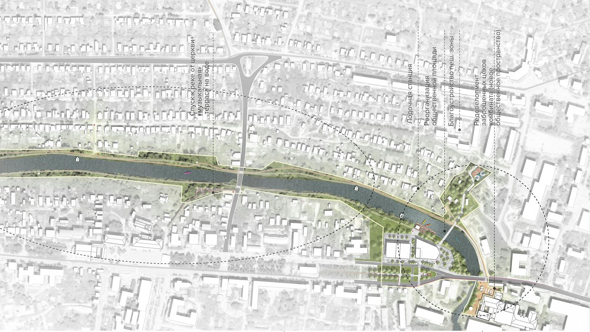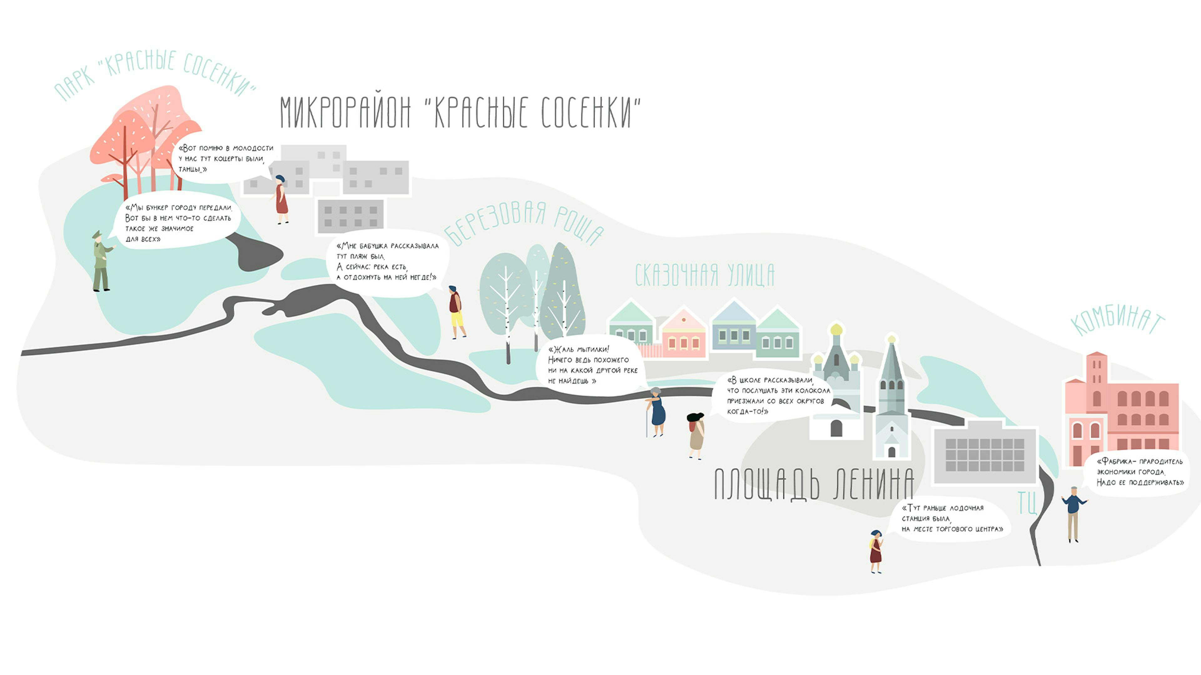 Тейково необходимо общественное пространство, которое объединит оба его центра, станет местом «для всех» и вернет единство жителей как тейковчан. Ключевой территорией для решения этой задачи является набережная реки Вязьма, которая протекает через весь город, от парка «Красные сосенки» до Тейковского хлопчатобумажного комбината. Наш проект, направленный на формирование непрерывной зеленой зоны с комплексом благоустроенных общественных пространств и маршрутов вдоль реки, позволит объединить разделенный город, усилив его идентичность. На вопрос «Тее кого?» мы отвечаем: «Все свои».