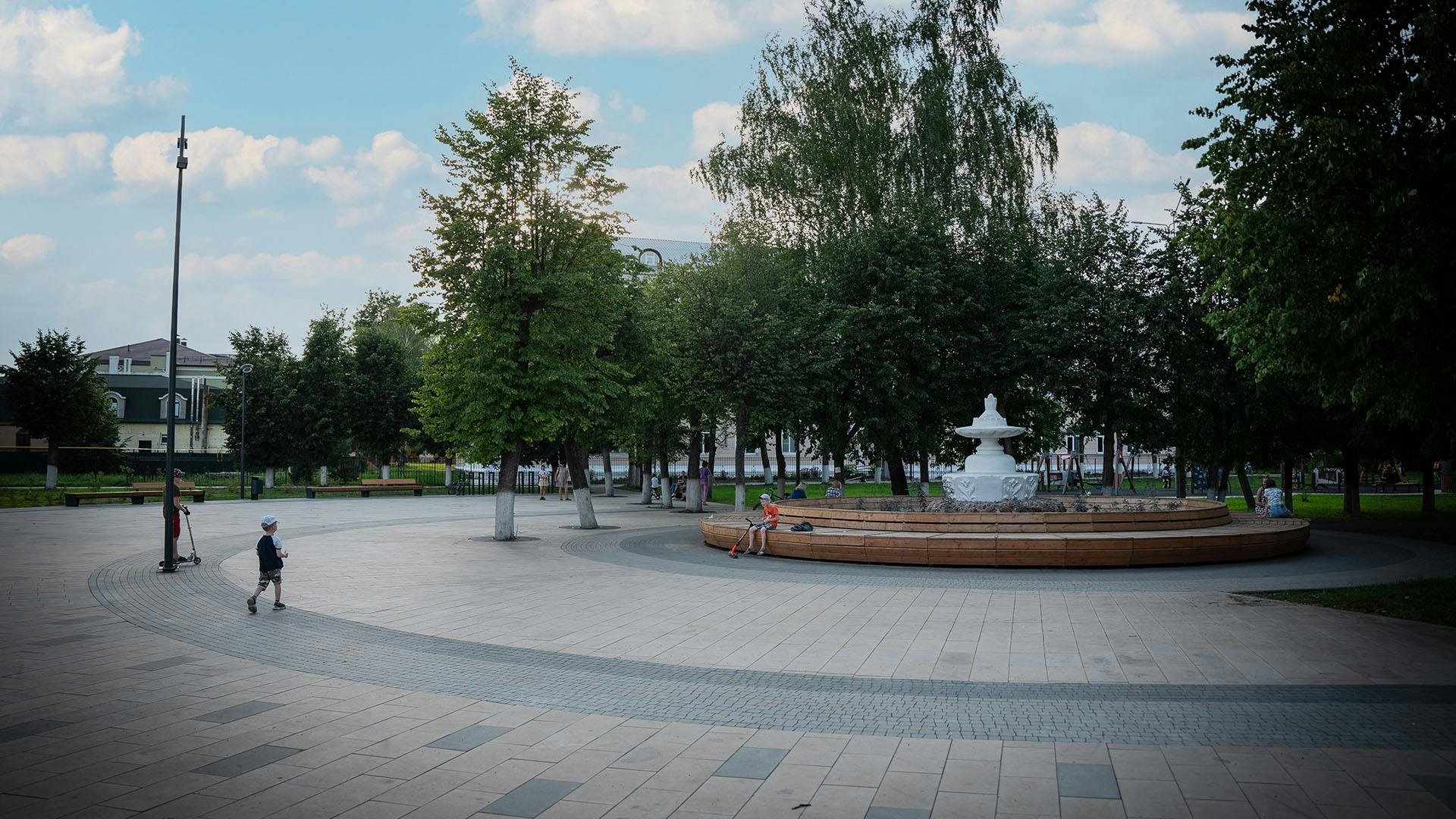 В рамках проекта мы предлагаем сделать площадь главным событийным пространством города со стационарной оборудованной сценой, местом встреч и общения. Проект включает реконструкцию исторического фонтана, спроектированый местным архитектором, художником-самоучкой Игнатием Чапкиным, который для всех жителей является «визитной карточкой» города. Вокруг фонтана установлены круговые сидения, а также создана пергола с качелями.